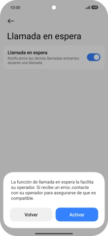 Pulsa el indicador junto a "Llamada en espera" para activar o desactivar la función.