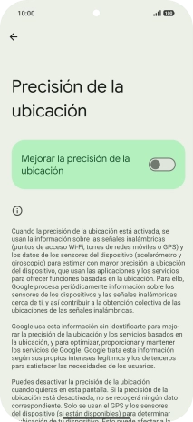 Si pulsas el indicador junto a "Mejorar la precisión de la ubicación" para activar la función, el teléfono podrá encontrar tu posición exacta con ayuda de los satélites GPS, la red móvil y una red wifi cercana. El GPS por satélite requiere vista libre al cielo.