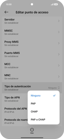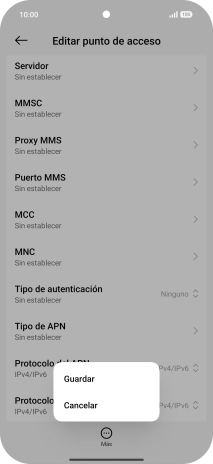 9. Selecciona el protocolo del punto de acceso (APN)