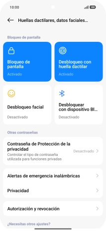 Pulsa Huellas dactilares, datos faciales y bloqueo de pantalla.