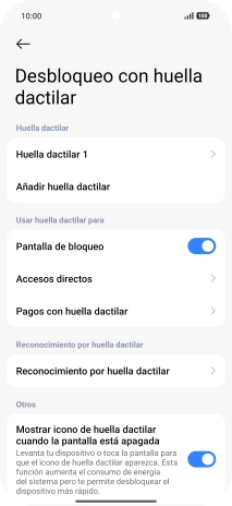 1. Busca "Desbloqueo con huella dactilar"