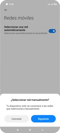 Pulsa el indicador junto a "Seleccionar una red automáticamente" para desactivar la función.
