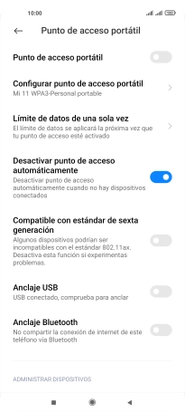 Pulsa el indicador junto a "Punto de acceso portátil" para activar la función.