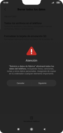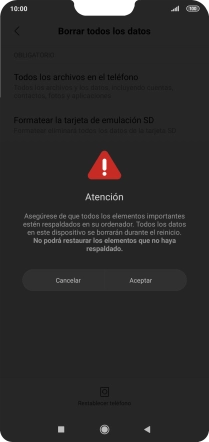 Pulsa Aceptar. Espera unos instantes mientras el teléfono restablece la configuración predeterminada. Sigue las indicaciones de la pantalla para configurar el teléfono y dejarlo listo para su uso.