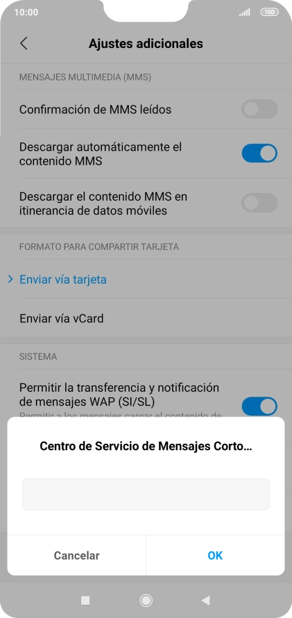 2. Introduce el número del centro servidor de mensajes cortos