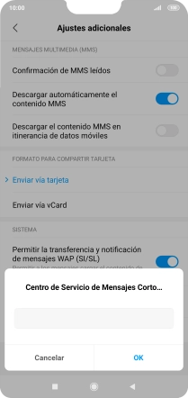 Pulsa Centro de Servicio de Mensajes Cortos (SMSC).