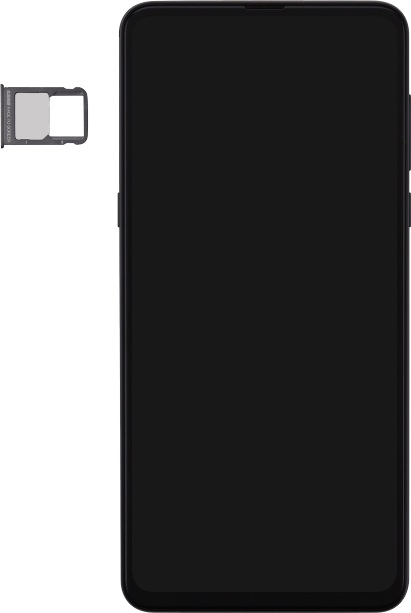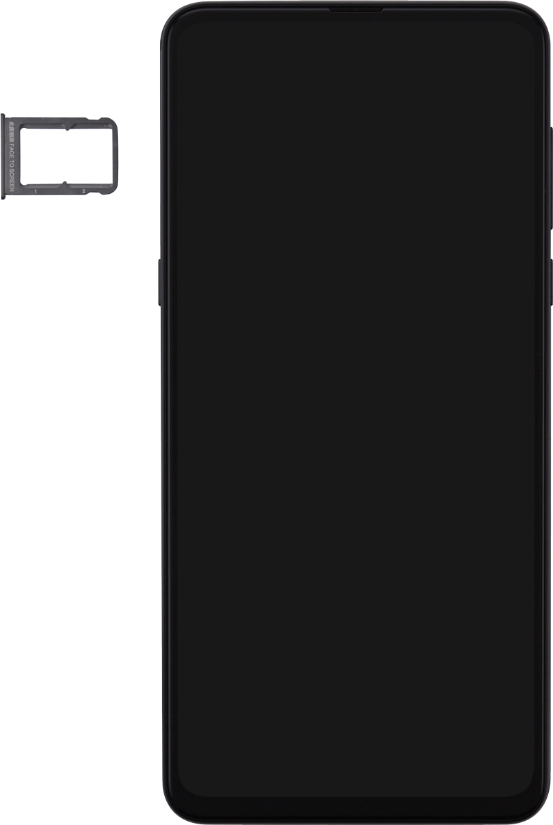 Coloca la tarjeta SIM en su contenedor y desliza el contenedor en el teléfono.