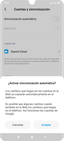 Activa o desactiva la sincronización automática de contenido en el Xiaomi Mi Note 10 Android 9.0