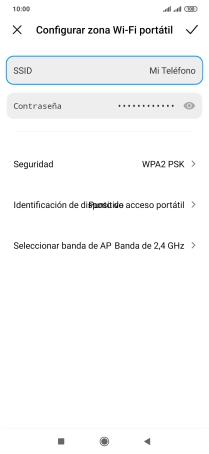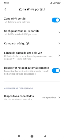 Pulsa el indicador junto a "Zona Wi-Fi portátil" para activar la función.
