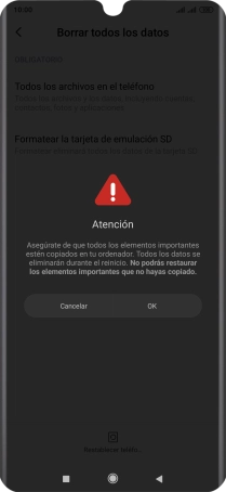 Pulsa OK. Espera unos instantes mientras el teléfono restablece la configuración predeterminada. Sigue las indicaciones de la pantalla para configurar el teléfono y dejarlo listo para su uso.