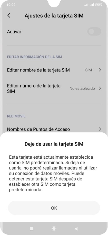 Si desactivas el uso de la tarjeta SIM, pulsa OK.