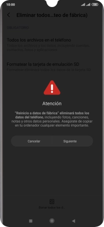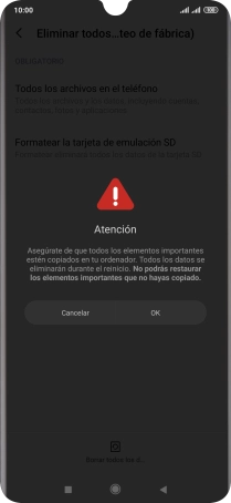 Pulsa Eliminar todos los datos (reseteo de fábrica).