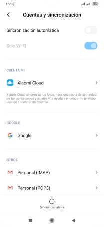 Busca "Cuentas y sincronización"