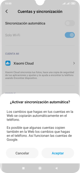 2 Activa o desactiva la sincronización automática de contenido
