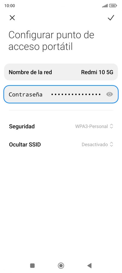 Pulsa el indicador junto a "Punto de acceso portátil" para activar la función.