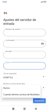 Pulsa Cuando elimine correos de Recibidos para eliminar los correos electrónicos del servidor cuando los borras del teléfono.
