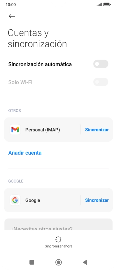 Pulsa el indicador junto a "Sincronización automática" para activar o desactivar la función.