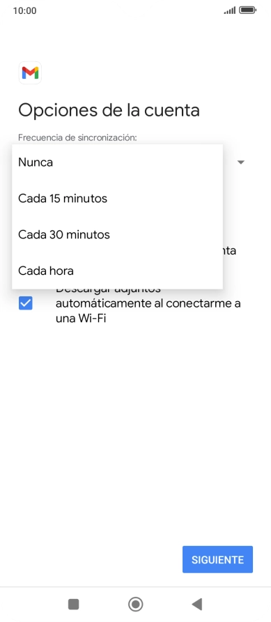 14. Selecciona el ajuste para la descarga de nuevos correos electrónicos