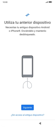 Si tienes un cable que pueda conectar ambos teléfonos, inserta el cable y sigue las instrucciones de la pantalla para transferir contenido a tu teléfono. Si no tienes un cable, pulsa ¿No tienes cable?.