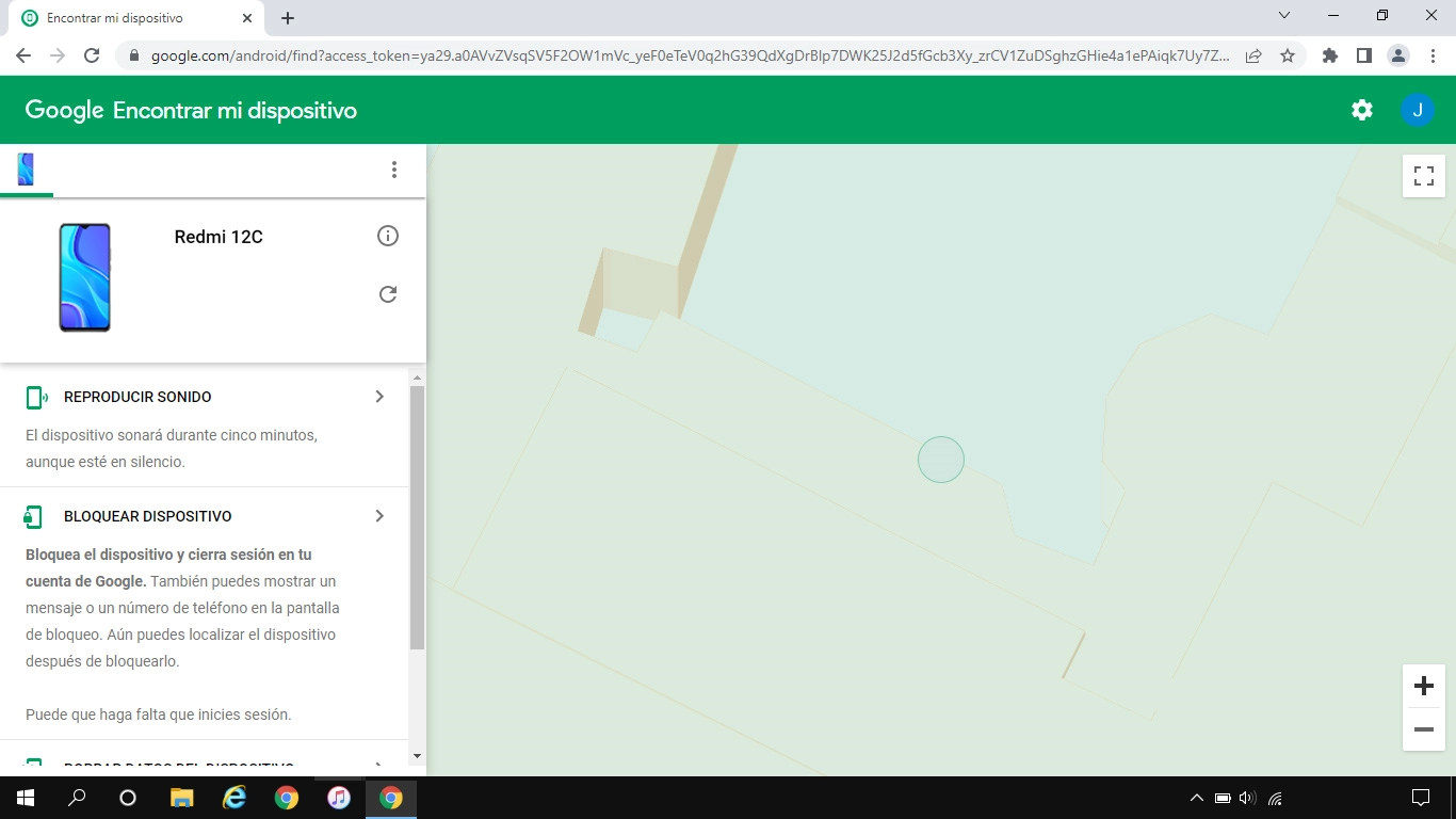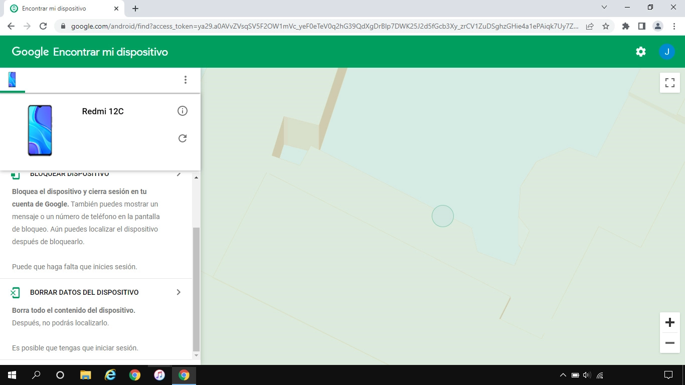 La última posición del teléfono se visualiza en el mapa.