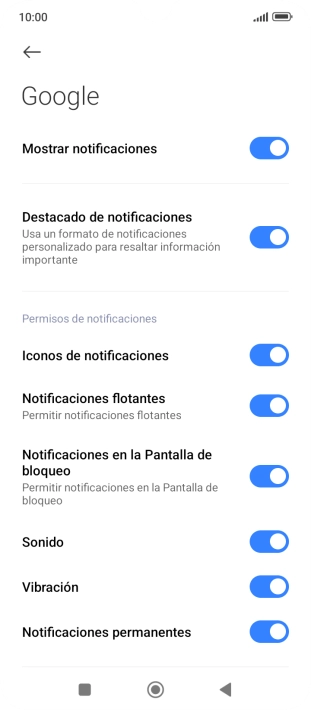 Pulsa el indicador junto a "Mostrar notificaciones" para activar o desactivar la función.