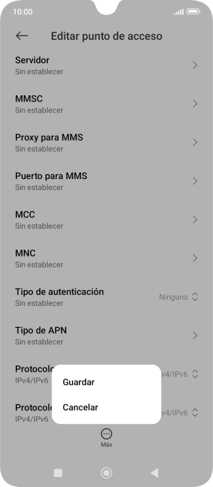 9 Selecciona el protocolo del punto de acceso (APN)