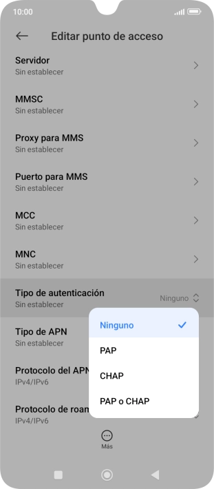 10 Selecciona el protocolo del punto de acceso (APN) en roaming
