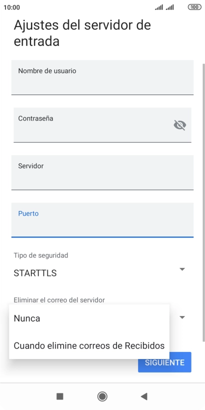 Pulsa Cuando elimine correos de Recibidos para eliminar los correos electrónicos del servidor cuando los borras del teléfono.