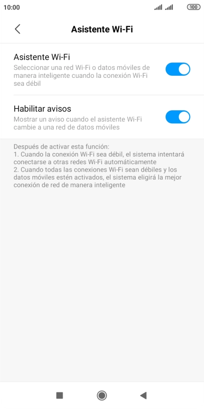 Pulsa el indicador junto a "Asistente Wi-Fi" para activar o desactivar la función.