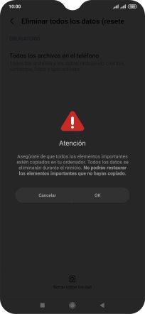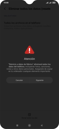 Pulsa Eliminar todos los datos (reseteo de fábrica).