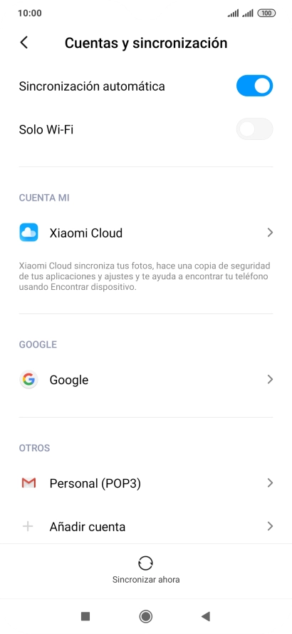 1 Busca "Cuentas y sincronización"