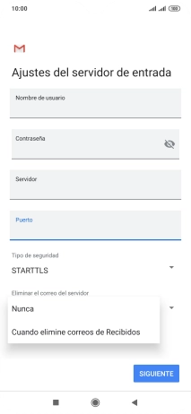 Pulsa Cuando elimine correos de Recibidos para eliminar los correos electrónicos del servidor cuando los borras del teléfono.