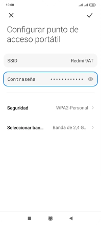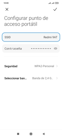 Pulsa el indicador junto a "Punto de acceso portátil" para activar la función.