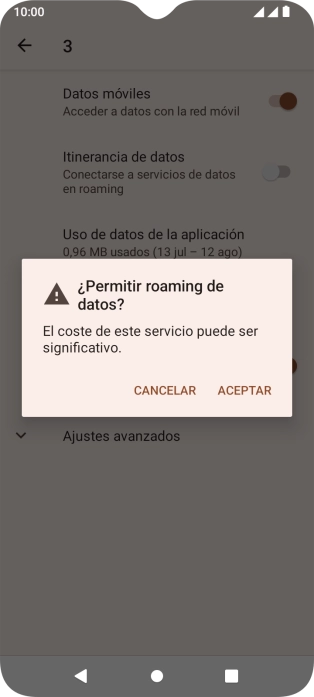 Pulsa el indicador junto a "Itinerancia de datos" para activar o desactivar la función.