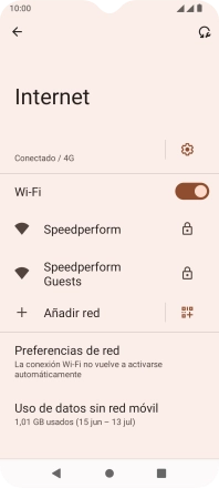 Si la red wifi está protegida con una contraseña, aparecerá un icono de candado junto al nombre de la red wifi. El administrador o el proveedor de red te puede proporcionar la contraseña.