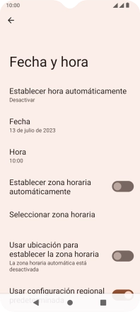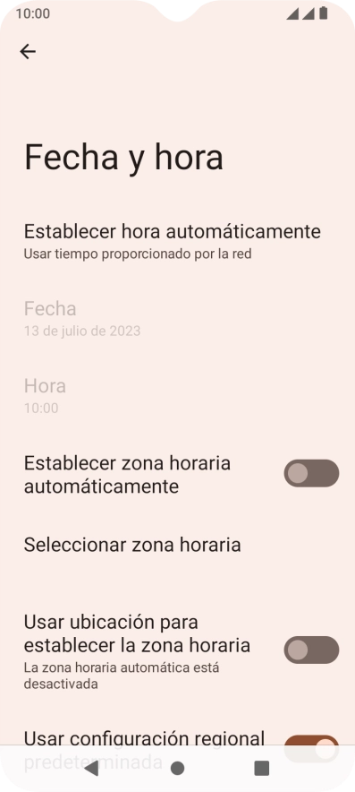 Pulsa el indicador junto a "Establecer zona horaria automáticamente" para activar la función.