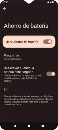 Pulsa el indicador junto a "Usar Ahorro de batería" para activar la función.