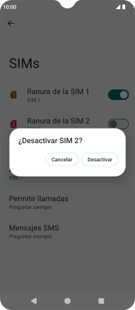 Si desactivas el uso de la tarjeta SIM, pulsa Desactivar.