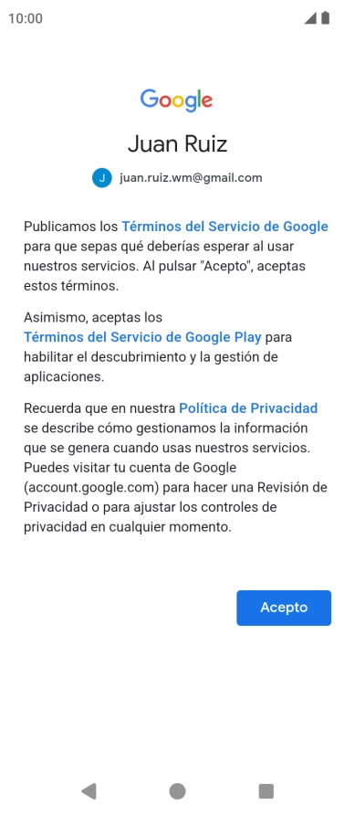 Pulsa Acepto y sigue las indicaciones de la pantalla para seleccionar los ajustes de tu cuenta de Google.