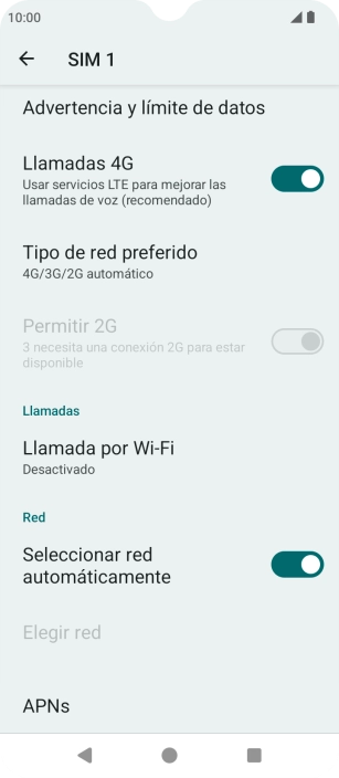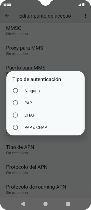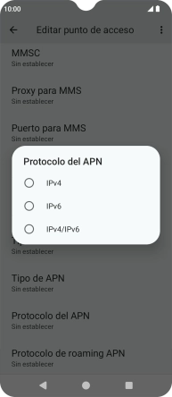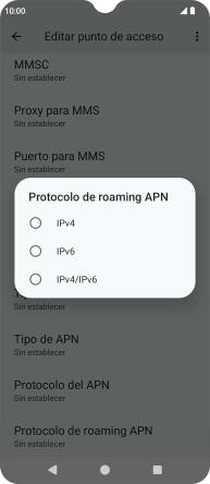 9 Selecciona el protocolo del punto de acceso (APN) en roaming