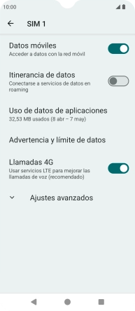 Pulsa en el campo junto a la conexión de datos para activarla.