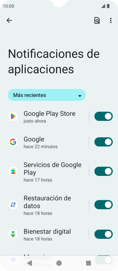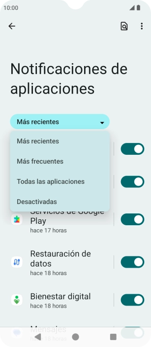 Pulsa el indicador junto a las apps deseadas para activar o desactivar la función.