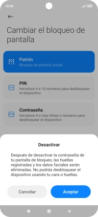 Pulsa Desactivar bloqueo de pantalla e introduce el código de seguridad extra que has creado anteriormente.