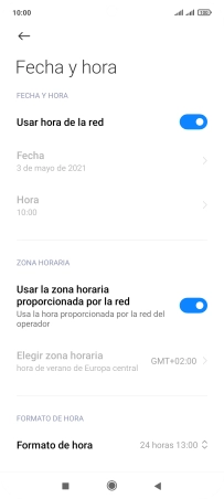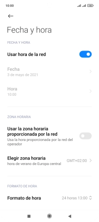 Pulsa el indicador junto a "Usar hora de la red" para activar la función.