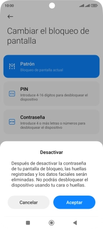 Pulsa Desactivar bloqueo de pantalla e introduce el código de seguridad extra que has creado anteriormente.