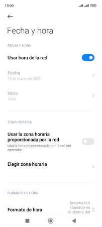 Pulsa el indicador junto a "Usar hora de la red" para activar la función.