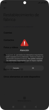 Pulsa OK. Espera unos instantes mientras el teléfono restablece la configuración predeterminada. Sigue las indicaciones de la pantalla para configurar el teléfono y dejarlo listo para su uso.