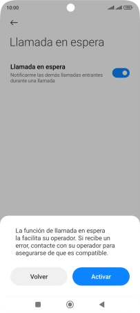 Pulsa el indicador junto a "Llamada en espera" para activar o desactivar la función.