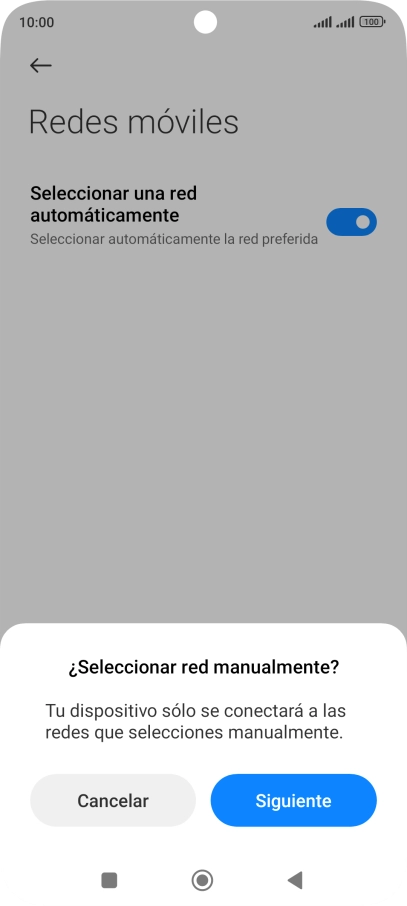 Pulsa el indicador junto a "Seleccionar una red automáticamente" para desactivar la función.