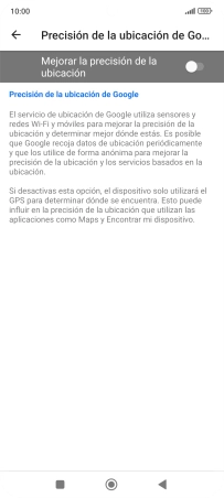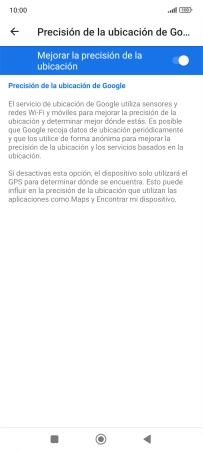 Si pulsas el indicador junto a "Mejorar la precisión de la ubicación" para desactivar la función, el teléfono podrá encontrar tu posición exacta con ayuda de los satélites GPS, pero le llevará más tiempo ya que no tiene acceso a informaciones complementarias de la red móvil o una red wifi cercana.